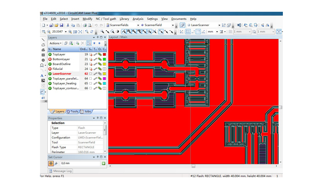 如,打開、導入,存儲、導出多種格式數據;編輯、修改、設計圖案的幾何形狀;有預置和定制的模版,可進行重復拼版,能編輯、修改加工路徑;進行被加工材料、定位靶標、定位孔、固定孔等工藝準備;生成和編輯用于制作盲槽、多拼板分割、制作外型、制作內型等加工的路徑。